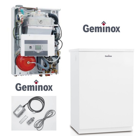 Kotel Geminox THRs 2-17 DC s rozsahem výkonu 2,3 až 16,9 kW v setu s nerezovým zásobníkem teplé vody Geminox MS 120 litrů je obvykle používán v moderních rodinných domech v kombinaci s alternativními zdroji energie (solární kolektory,krby, tepelná čerpadla atp).Splňuje požadavky na vytápění přímého topného okruhu obvykle radiátory nebo podlahové vytápění. Je určen k vytápění objektů s malou tepelnou ztrátou do 17 kW.Kotel má rozměry 540x760x361 mm.