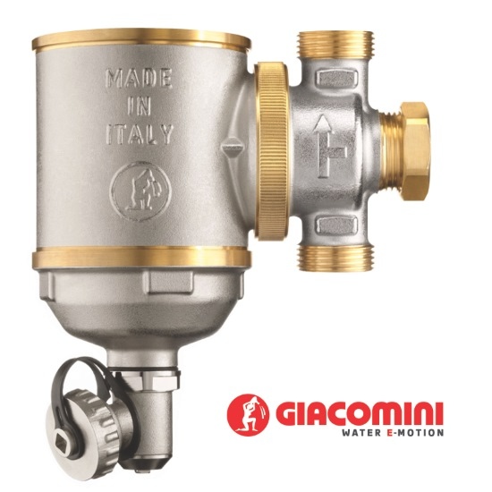 Odstředivý odkalovač s magnetickou vložkou pro vodorovné a svislé potrubí se závitovým připojením 3/4"